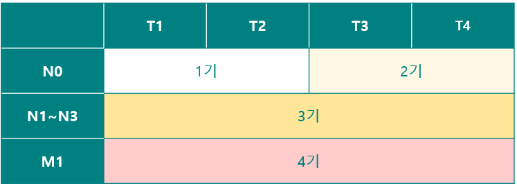 원격전이는 종양이 멀리 떨어진 장기로 퍼져 나간 상태를 말하는데, M(Metastasis)은 원격전이를 나타낸다.