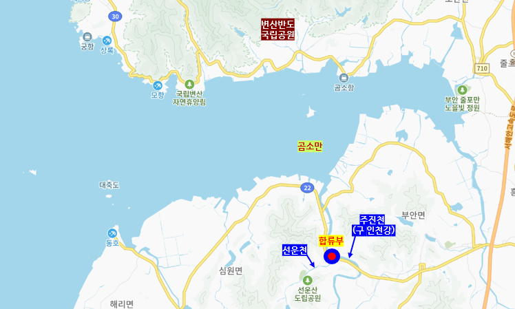 풍수지리적으로 풍천은 2개의 하천(서→동, 남→북)이 만나는 지점을 의미한다. 풍수적 조건과 함께 강하구에 위치한 공간적 조건이 부합되어, 풍천으로 불렸던 곳은 전라북도 고창 선운사 인근의 주진천·선운천 합류지점이다. 곰소만으로 흘러 나가는 주진천에서 바다·민물이 섞인 구간은 약 10km에 달한다고 한다. 1911년 행정구역 개편에 따라 인천강의 명칭이 주진천으로 바뀌었는데, 주진(舟津)은 「배가 드나들었던 곳」이라는 의미를 가진다.