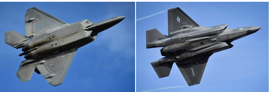 미국 5세대 전투기는 랩터(Raptor, F-22)와 라이트닝2가 각각 하이급과 로우·미들급의 성격을 가지는데, 엄밀히 말하면 미들급인 라이트닝2가 로우급 임무까지 커버한다고 보면 된다. 랩터는 F-15를 대체한 반면, F-35는 F-16을 포함한 로우-미들급들을 대체한 것이다. 공중전은 가시거리의 안팎 여부에 따라 아래와 같이 2가지로 구분된다.