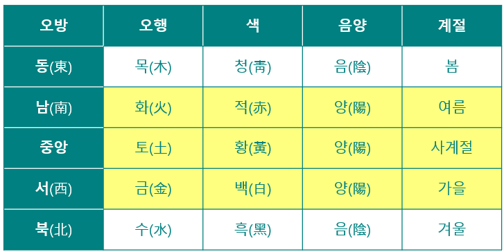 조선시대 굳게 닫혔던 북문들이 음양오행설에 따라 개방되기도 했는데, 오방(五方)은 다음의 기운을 의미했다.