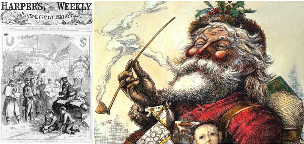 토머스 내스트가 묘사한 산타클로스, 하퍼스 위클리 표지 1863년(좌) 1881년(우)
