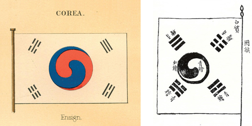 그 전까지 왕조국가 조선에는 국기 대신 어기(御旗, 태극팔괘도)가 있었는데, 태극기는 태극팔괘도를 일부 변형한 것으로 보인다. 1882년 미 해군부이 해양국가의 깃발들(Flags of Maritime Nations)를 발간했는데, 여기에는 당시 세계 49개국 154점의 깃발을 소개하고 있다. 그 중 태극기로 추정되는 문양 위에는 Corea와 아래에는 Ensign(선적기)이라는 표기가 있다. 선적기는 선박의 국적을 나타내니, 국기라고 볼 수도 있다.