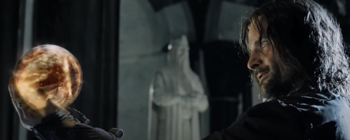 팔란티르 중의 하나를 들고 있는 곤도르, 영화 「반지의 제왕」