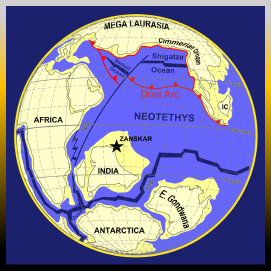 2.5억년 전부터 바다에서 융기한 킴메리안 산맥(로라시아 대륙 남해안)이 신테티스(neotethys)에서 만들어진 구름을 차단하여 육지로 이동하지 못하게 했고, 이 구름들이 계속 쌓여 크고 강한 비구름으로 변해 판게아 대륙에 지속적인 강수를 일으켰을 가능성도 있다. 킴메리안 조산운동(Cimmerian Orogeny)은 유럽·아시아 대륙 일부에 걸쳐 일어난 조산활동으로, 그 결과 다음의 산맥들이 형성되었다.
