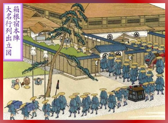 도쿠가와 이에야스는 세키가하라 전투에서 승리한 후에 에도(현 도쿄)에 막부를 세웠는데, 이후 다이묘들을 관리·통제하기 위해 여러 정책을 실시하게 된다. 산킨코타이(参勤交代)는 지방의 다이묘들이 일정 기간 동안 에도에 머물도록 하는 사실상 인질제도로, 반란을 사전에 억제하는 목적을 가졌다. 이렇게 다이묘들은 1년씩 번갈아가면서 영지와 에도에서 머문 것인데, 이 때 활성화된 문화가 여관·온천·혼욕이다. 다이묘의 잦은 이동은 대규모의 수행인력이 수반되었고, 이는 전국적으로 수 많은 편의시설(숙박·식당 등)을 필요로 했던 것이다.